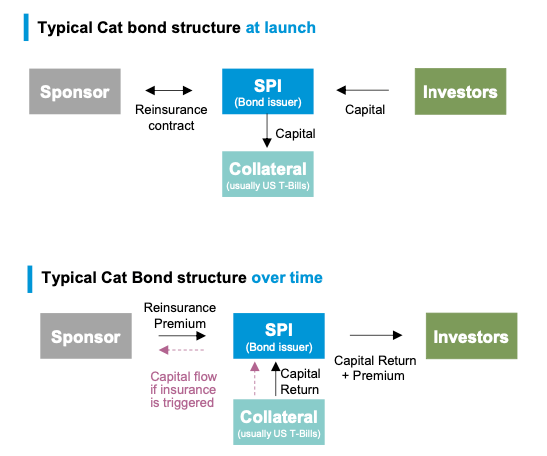 El negocio consiste en transferir riesgos del sector asegurador/reasegurador a los mercados de capital, permitiendo que inversores institucionales participen en los riesgos (y potenciales beneficios) de eventos como huracanes, terremotos y otros desastres.