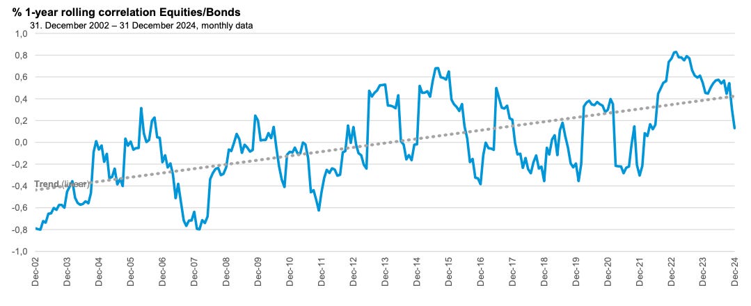 Su correlación histórica con renta variable y renta fija es muy baja, lo que aporta diversificación genuina, especialmente relevante en periodos de caída de mercados tradicionales.