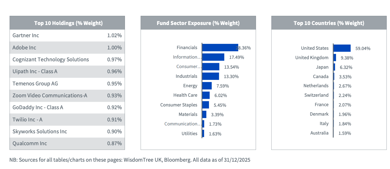 Mantienen pesos regionales relativamente similares al índice principal para controlar el riesgo, por lo que su exposición al factor value está más suavizada.