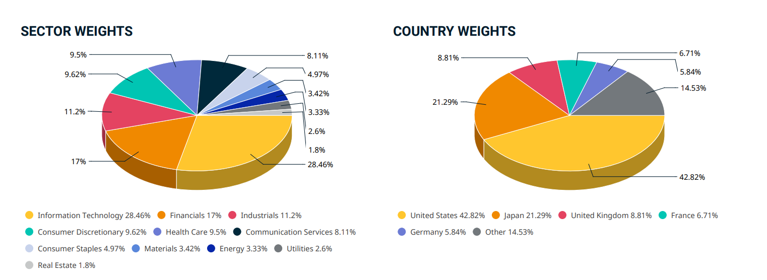 Intentan mantener los mismos pesos sectoriales del MSCI World pero regionalmente se desvían muchísimo más