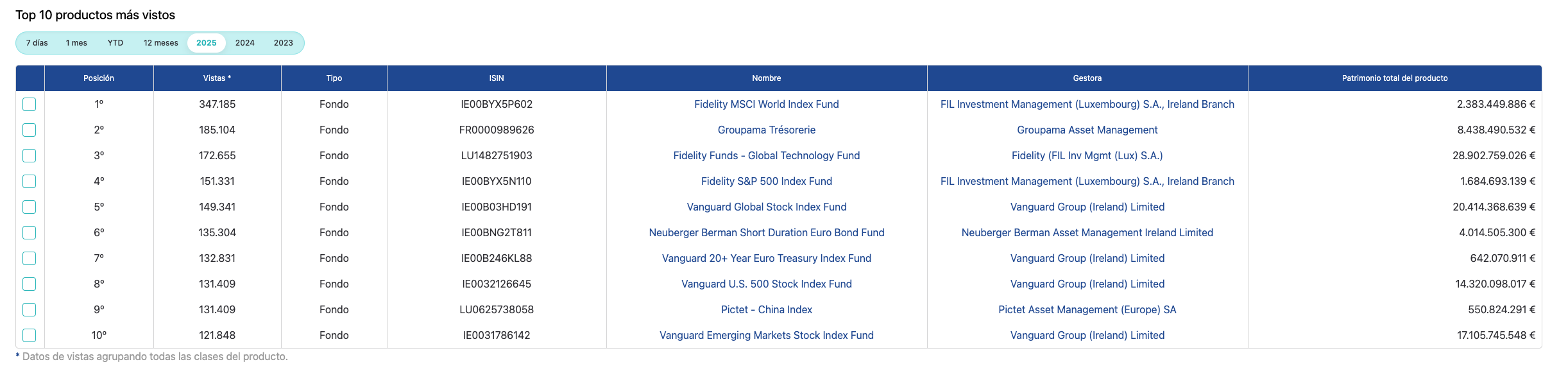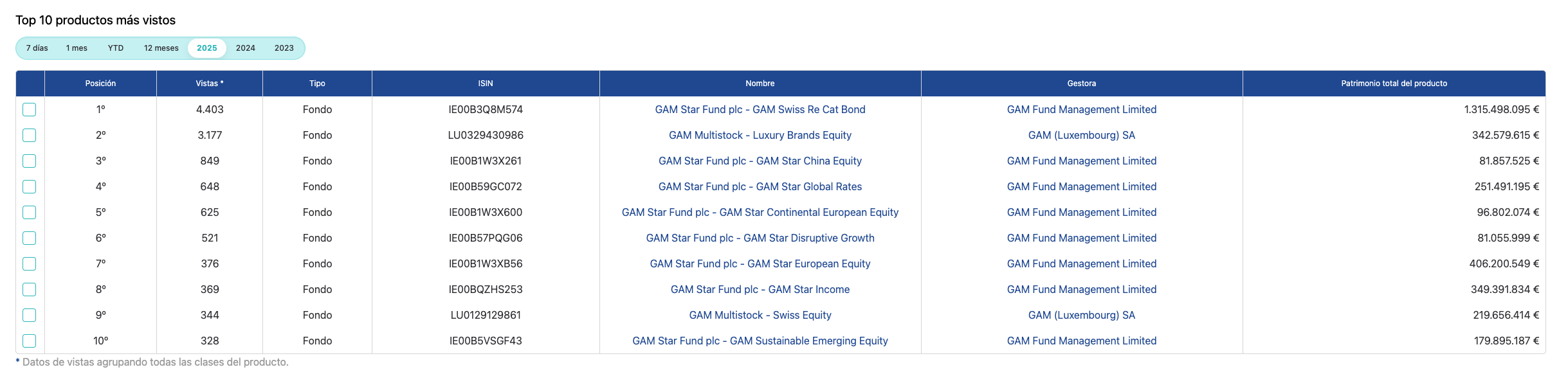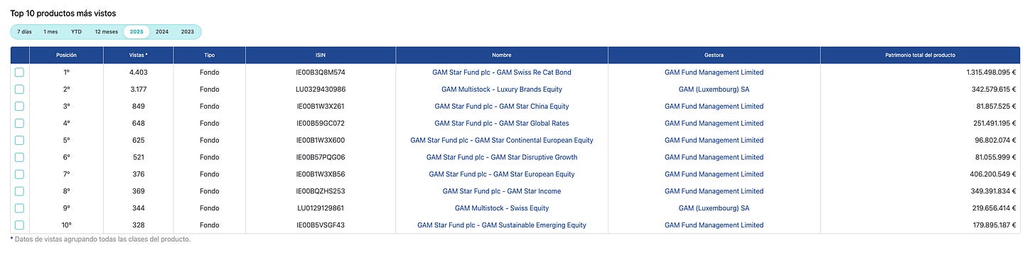 La cuarta pestaña para mí es la que mayor valor añadido tiene, aunque quizás no para inversores particulares sino para todo el ecosistema de fondos y la industria.