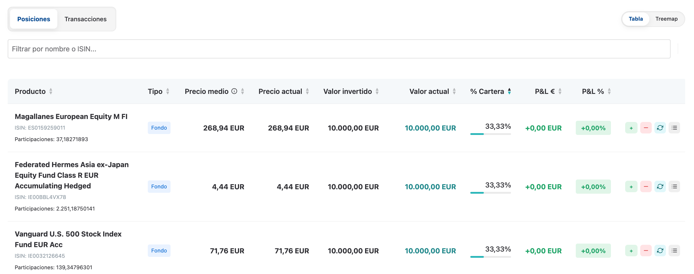 Aquí puedes añadir los datos de carteras simuladas y ver su rentabilidad e introducir operaciones de compra, venta y traspasos.