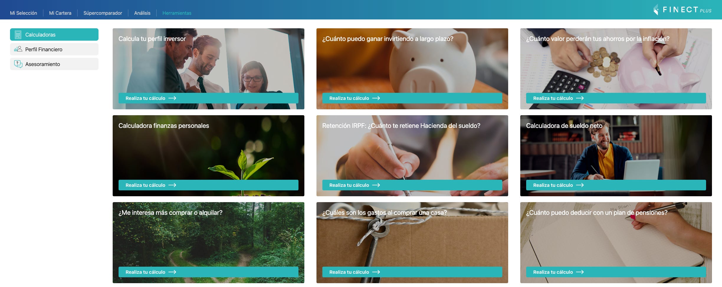 Es una herramienta que ha lanzado Finect para la comparativa de productos de inversión colectiva, seguimiento y análisis de carteras.